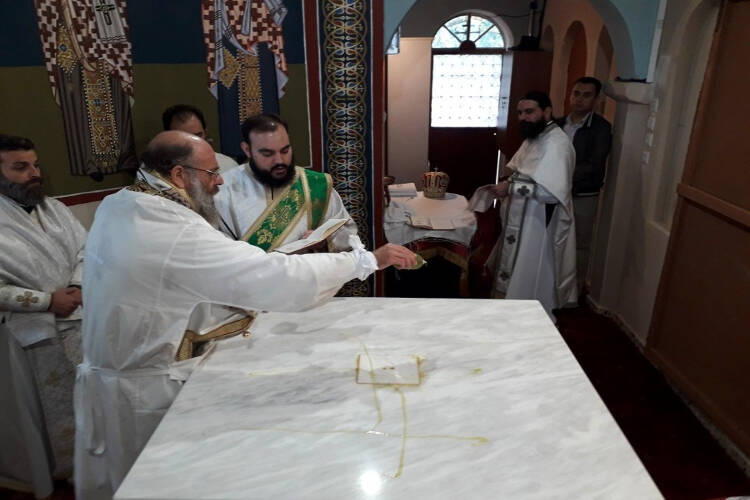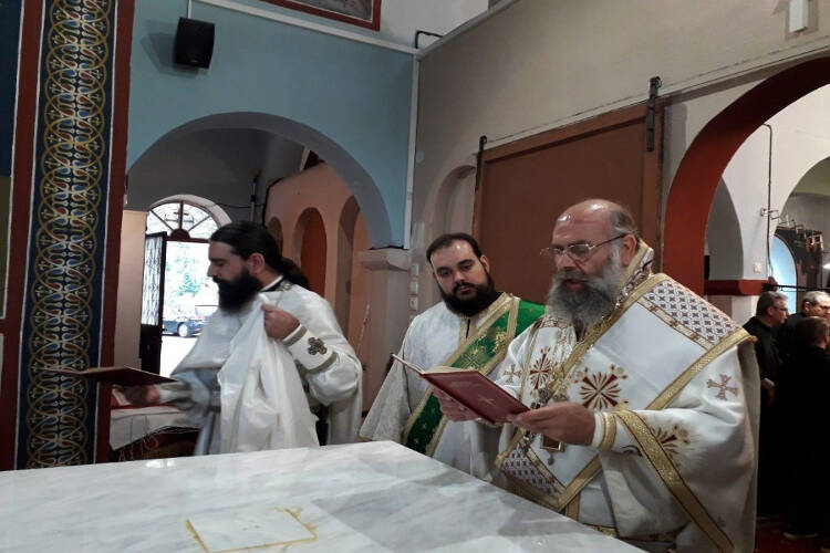 Ενώ, το Σάββατο 21 Σεπτεμβρίου, χοροστάτησε στην ακολουθία του Όρθρου, τέλεσε την ακολουθία των Εγκαινίων και τη Θεία Λειτουργία.