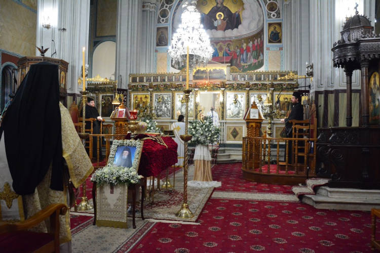 Στις 15:00’ το μεσημέρι τελέσθηκε η Εξόδιος Ακολουθία προεξάρχοντος του Σεβασμιωτάτου Τοποτηρητού κ. Ιεροθέου, ο οποίος εκπροσώπησε και τον Μακαριώτατο Αρχιεπίσκοπο Αθηνών και πάσης Ελλάδος κ. κ. Ιερώνυμο, συγχοροστατούντων των Μητροπολιτών Πειραιώς κ. Σεραφείμ και Μεσογαίας και Λαυρεωτικής κ. Νικολάου.