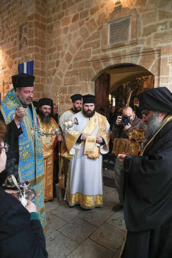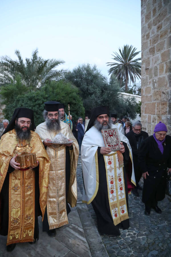 Κατά τη διάρκεια τού εσπερινού έγινε επίσης περιφορά των τιμίων λειψάνων και της θαυματουργού εικόνος τού Αγίου Κασσιανού, κάτω από την οποία, ως είθισται στην κυπριακή παράδοση, διέρχονται όλοι οι πιστοί προς αγιασμό και ευλογία.
