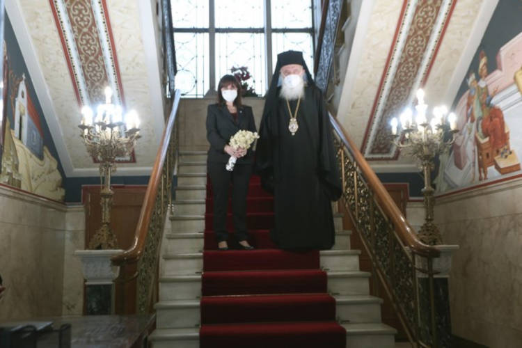 Ευχήθηκε, επίσης, «οι καλές αυτές σχέσεις να συνεχισθούν με την παρουσία και το ενδιαφέρον και της Εξοχωτάτης Νέας Προέδρου, κυρίας Αικατερίνης Σακελλαροπούλου, προς το συμφέρον της πατρίδας μας, της Ορθοδοξίας και του λαού, ο οποίος σέβεται και τιμά τα ιερά και όσια της φυλής και του ευσεβούς Γένους μας».