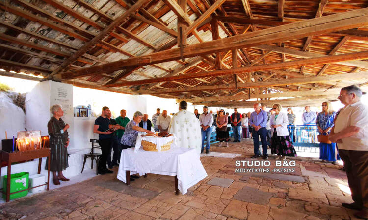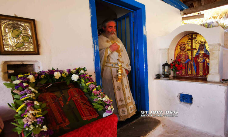 Φέτος τον πανηγυρικό εσπερινό και την θεία λειτουργιά τέλεσε ο πρωτοπρεσβύτερος π. Ελευθέριος Μίχος, ιερέας της ενορίας Ευαγγελιστρίας Ναυπλίου. Φέτος δεν πραγματοποιήθηκε λιτάνευση της Ιερής εικόνας των Αγίων πέριξ του χώρου με φόντο το απέραντο γαλάζιο λόγω του κορονοϊού.