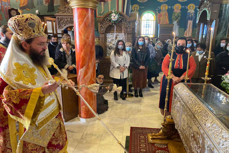 Την κυριώνυμο ημέρα της εορτής, Τετάρτη 3 Νοεμβρίου, τελέσθηκε η Πανηγυρική Δισαρχιερατική Θεία Λειτουργία, προεξάρχοντος του Σεβασμιωτάτου Μητροπολίτου Πολυανής και Κιλκισίου κ. Βαρθολομαίου και συλλειτουργούντος του Σεβ. Μητροπολίτου κ. Γαβριήλ.