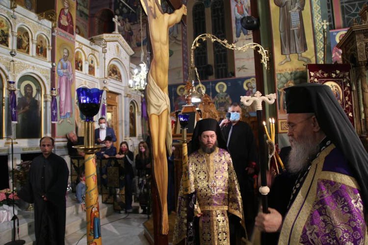 Ο Σεβασμιώτατος, στο σύντομο μήνυμά του προς τους πιστούς, ανέφερε ότι το μεγαλύτερο κήρυγμα της σημερινής ημέρας είναι αυτός ο ίδιος ο Εσταυρωμένος Χριστός που βρίσκεται στο μέσον του Ναού και άπλωσε τα χέρια του για να μας αγκαλιάσει, γιατί μας αγαπά και αυτή είναι μια πληγωμένη και θυσιαστική αγάπη.