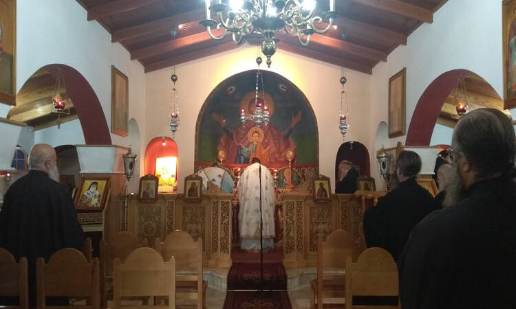 Στον Ιερό Ναό Αγίων Κυπριανού και Ιουστίνης τελέσθηκε η Θεία Λειτουργία, κατά την οποία ιερούργησε ο πρωτοπρ. Δημήτριος Πατσιαλός, εφημέριος του Ιερού Ναού Αγίου Δημητρίου Νεαπόλεως, με τον διάκονο π. Σιλουανό Ψιλλιά. Στην αίθουσα εκδηλώσεων του Ησυχαστηρίου, ακολούθησαν οι εργασίες της ΙΒ’ Ιερατικής Ημερίδος της Ιεράς Μητροπόλεως.