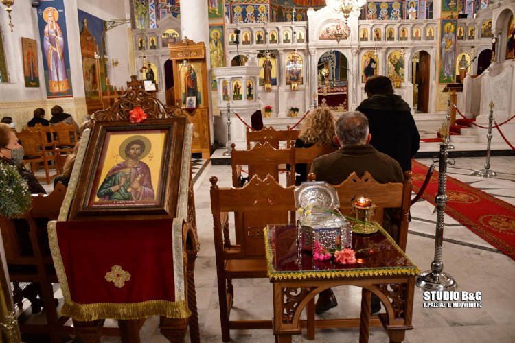 Ο εορταστικός εσπερινός τελέσθηκε παρουσία και του Γενικού Αρχιερατικού της Μητροπόλεως Αργολίδας Πρωτοπρεσβύτερου π.Πέτρο Αθανασόπουλου, ενω έψαλλαν ο πρωτοψάλτης και δημοτικός σύμβουλος του Δήμου Ναυπλιέων, Κωνσταντίνος Ρούτουλας και ο λαμπαδάριος Κώστας Παπαγεωργίου.
