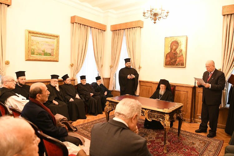 Τον Παναγιώτατο προσφώνησε ο Άρχων Πριμηκήριος της Μ.τ.Χ.Ε., Αθανάσιος Αγγελίδης, Πρόεδρος της Εφορείας της Πατριαρχικής Μεγάλης του Γένους Σχολής.