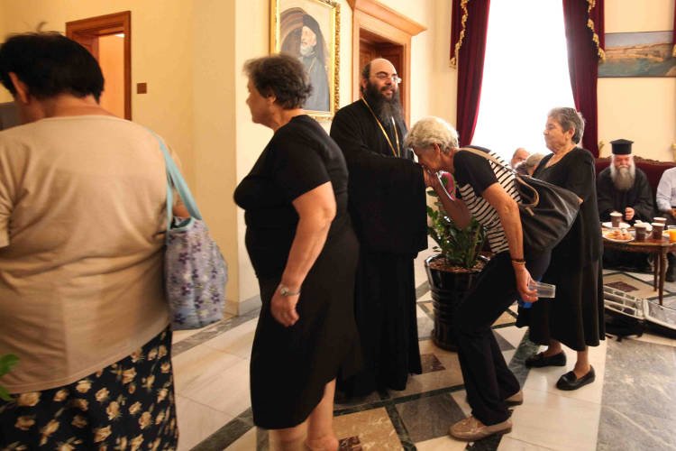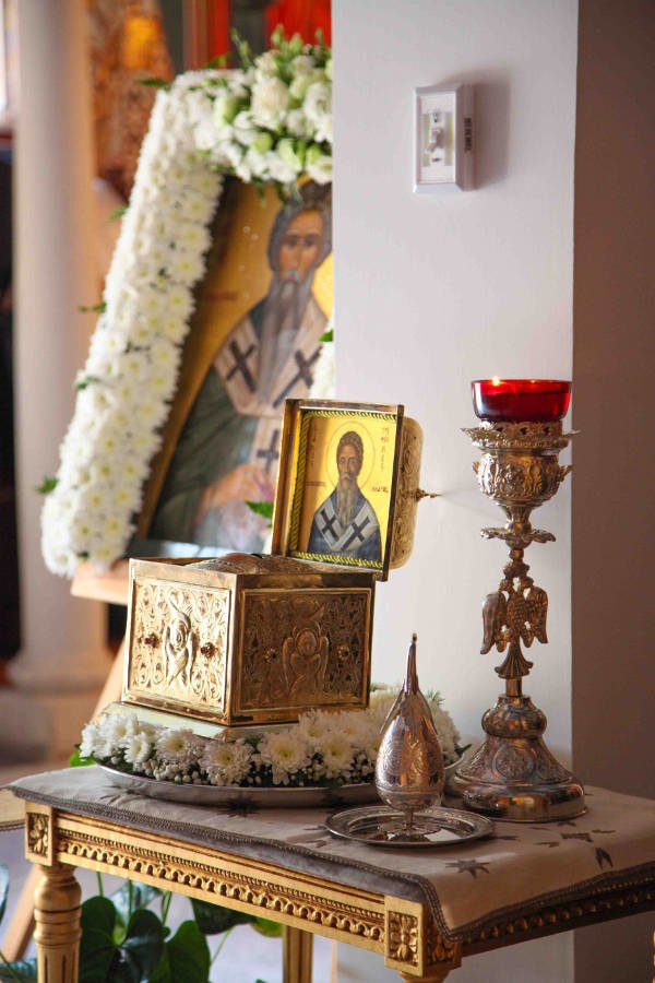 Στο τέλος της Θ. Λειτουργίας αναγνώσθηκε κι η ευχή των κολλύβων της εορτής και μετά το πέρας της ακολουθίας όλοι ευχήθηκαν στον εορτάζοντα, ο οποίος με τη σειρά του παρέθεσε δεξίωση.